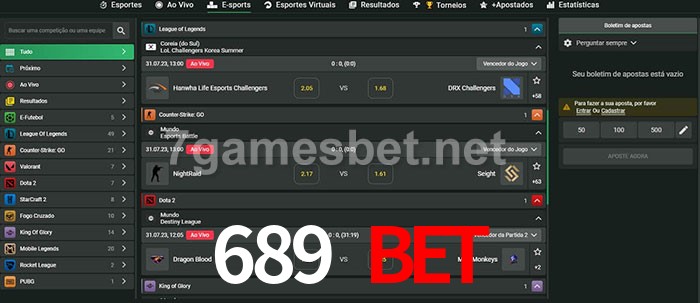 O 689 bet oferece uma grande seleção de opções de apostas em e-sports com probabilidades competitivas